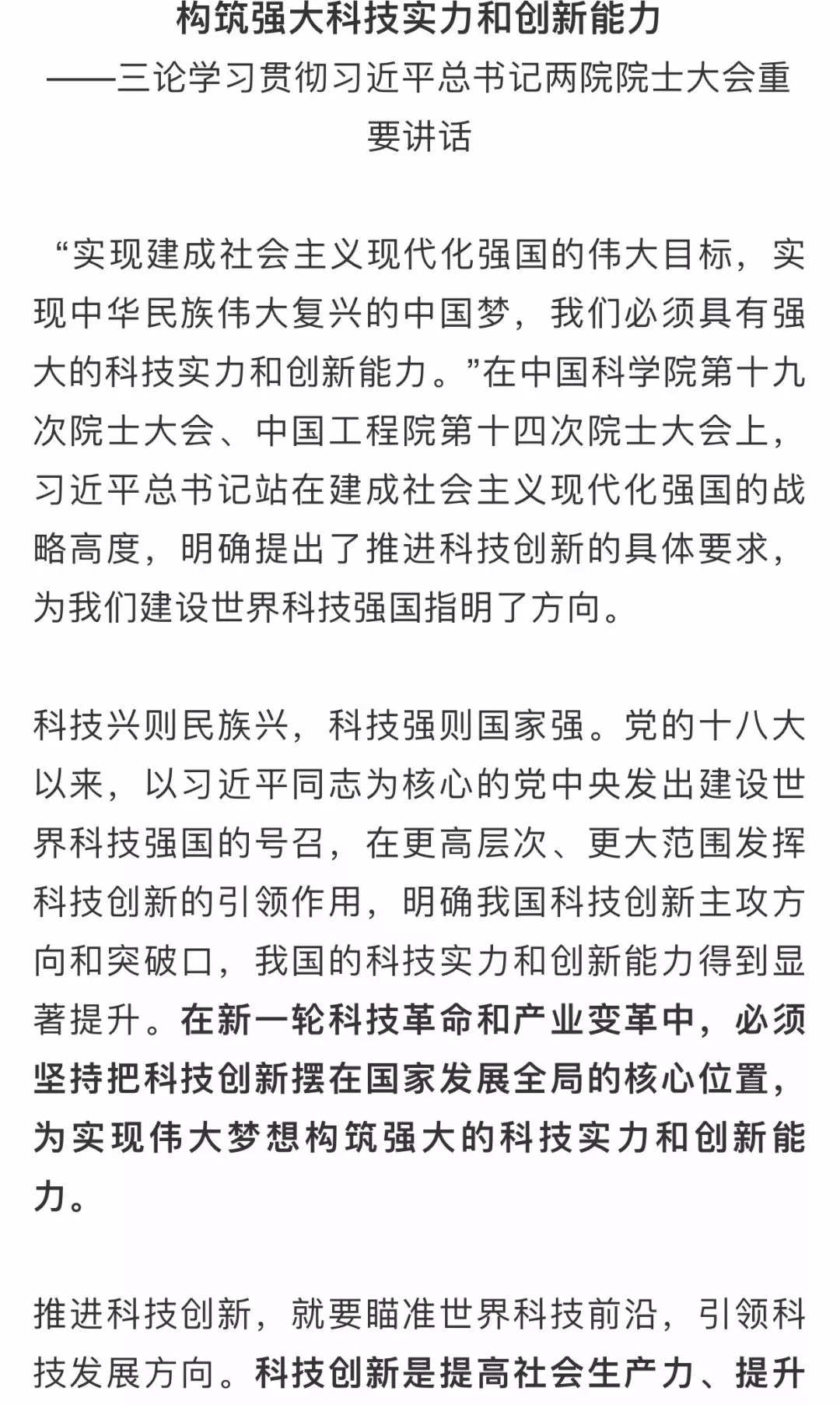 人民日報(bào)評論員:構(gòu)筑強(qiáng)大科技實(shí)力和創(chuàng)新能力——三論學(xué)習(xí)貫徹習(xí)近平總書記兩院院士大會(huì)重要講話