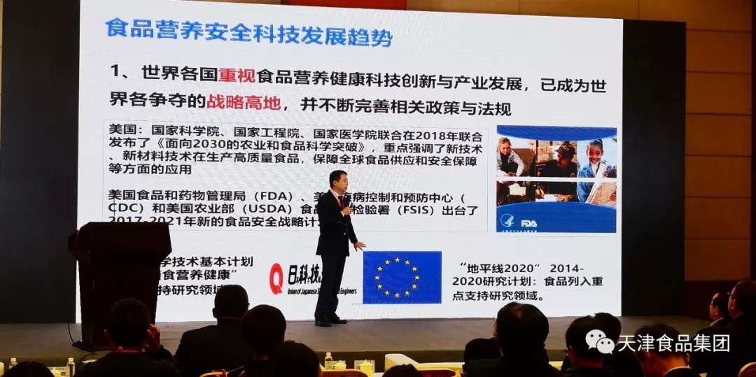 論壇分上下午兩個半場舉行。在上午的論壇中,中國食品科學(xué)技術(shù)學(xué)會理事長孟素荷、中國輕工業(yè)聯(lián)合會副秘書長于學(xué)軍、天津科技大學(xué)副校長路福平、南開大學(xué)特聘教授王碩分別圍繞“品牌與科技創(chuàng)新”、“食品工業(yè)運行情況及宏觀發(fā)展環(huán)境影響分析”、“老年食品的營養(yǎng)功能、制造技術(shù)和開發(fā)策略”、“健康中國發(fā)展戰(zhàn)略背景下的食品營養(yǎng)與安全”作了主題報告。四位專家學(xué)者從全國食品產(chǎn)業(yè)發(fā)展現(xiàn)狀、整體經(jīng)濟形勢、食品行業(yè)創(chuàng)新發(fā)展態(tài)勢等方面宏觀分析了我國,特別是天津市食品行業(yè)的整體形勢及發(fā)展趨勢,就如何進(jìn)一步優(yōu)化產(chǎn)業(yè)和產(chǎn)品結(jié)構(gòu),提升食品工業(yè)綜合競爭力,促進(jìn)產(chǎn)業(yè)持續(xù)健康發(fā)展提出解決方案,為天津食品工業(yè)科技創(chuàng)新、高質(zhì)量發(fā)展提供了方向。