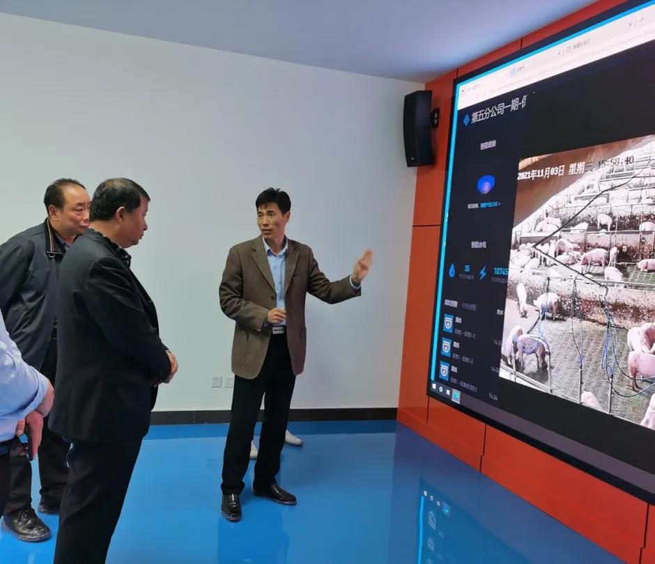 劉軍一行深入公司生豬產(chǎn)業(yè)技術(shù)中心,詳細(xì)了解了中心通過(guò)AI巡檢、智能環(huán)控、智能能耗、精準(zhǔn)飼喂、智能盤(pán)估、生產(chǎn)數(shù)據(jù)平臺(tái)等實(shí)現(xiàn)豬場(chǎng)遠(yuǎn)程可視化的管理模式,現(xiàn)場(chǎng)聽(tīng)取了生豬疫病檢測(cè)中心工作情況及未來(lái)規(guī)劃的匯報(bào)。