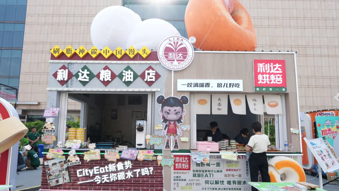展區(qū)主要展示利達(dá)主食與利達(dá)烘焙兩個(gè)系列產(chǎn)品,結(jié)合年輕主題,搭建了以“饅頭-中國刷脂神器”為主題的互動(dòng)打卡點(diǎn),設(shè)立打卡贈(zèng)送“漆畫扇”活動(dòng),更好地向年輕群體宣傳了利達(dá)品牌,打破消費(fèi)者對(duì)利達(dá)的固有認(rèn)知,和年輕的消費(fèi)群體展開友好的交流,為消費(fèi)者提供多“young”性的優(yōu)質(zhì)碳水選擇。此外,結(jié)合夜市消費(fèi)場景,新研發(fā)的利達(dá)花樣主食土豆、紫薯、香煎肉花卷、利達(dá)鍋巴菜貝果等,一經(jīng)推出,立即成為市集的網(wǎng)紅產(chǎn)品,深受消費(fèi)者喜愛。