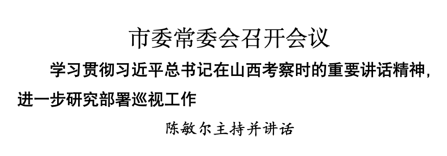 本報(bào)訊(記者 于春灃 劉國棟)7月13日,市委常委會召開會議,學(xué)習(xí)貫徹習(xí)近平總書記在山西考察時的重要講話精神,進(jìn)一步研究部署巡視工作。市委書記陳敏爾主持會議并講話。