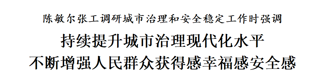 陳敏爾、張工在調(diào)研中強(qiáng)調(diào),要認(rèn)真學(xué)習(xí)貫徹習(xí)近平總書記在中央城市工作會議上的重要講話精神,深入落實(shí)習(xí)近平總書記視察天津重要講話精神,踐行人民城市理念,強(qiáng)化黨建引領(lǐng)基層治理創(chuàng)新,深化大城細(xì)管、大城智管、大城眾管,著力提升城市治理現(xiàn)代化水平,不斷增強(qiáng)人民群眾獲得感、幸福感、安全感。圍繞籌備上合組織峰會,在周全安全上下功夫,強(qiáng)化問題導(dǎo)向、目標(biāo)導(dǎo)向、結(jié)果導(dǎo)向,提升執(zhí)行力,把握時(shí)度效,落實(shí)工作方案,完善應(yīng)急預(yù)案,健全工作體系,優(yōu)化指揮調(diào)度機(jī)制,全鏈條推動(dòng)各項(xiàng)任務(wù)有序開展。堅(jiān)持點(diǎn)線面網(wǎng)相結(jié)合,抓好社會面整體防控,強(qiáng)化風(fēng)險(xiǎn)隱患源頭治理,建好管好用好綜治中心,發(fā)展壯大群防群治力量,加強(qiáng)網(wǎng)格化服務(wù)管理,深化矛盾糾紛多元化解,完善城市運(yùn)行保障和應(yīng)急管理體系,嚴(yán)格落實(shí)安全生產(chǎn)責(zé)任制,有力保障全市域、全時(shí)段、全要素安全。深化道路交通綜合治理,加強(qiáng)交通組織和疏導(dǎo),持續(xù)提升交通態(tài)勢感知力、交通擁堵疏解力、交通事件反應(yīng)力,確保道路交通安全暢通。提高信訪工作法治化水平,完善思路舉措,注重分類指導(dǎo),提升信訪干部的群眾工作能力、法律政策水平,增強(qiáng)信訪工作實(shí)效,更好維護(hù)群眾合法權(quán)益、服務(wù)全市工作大局。