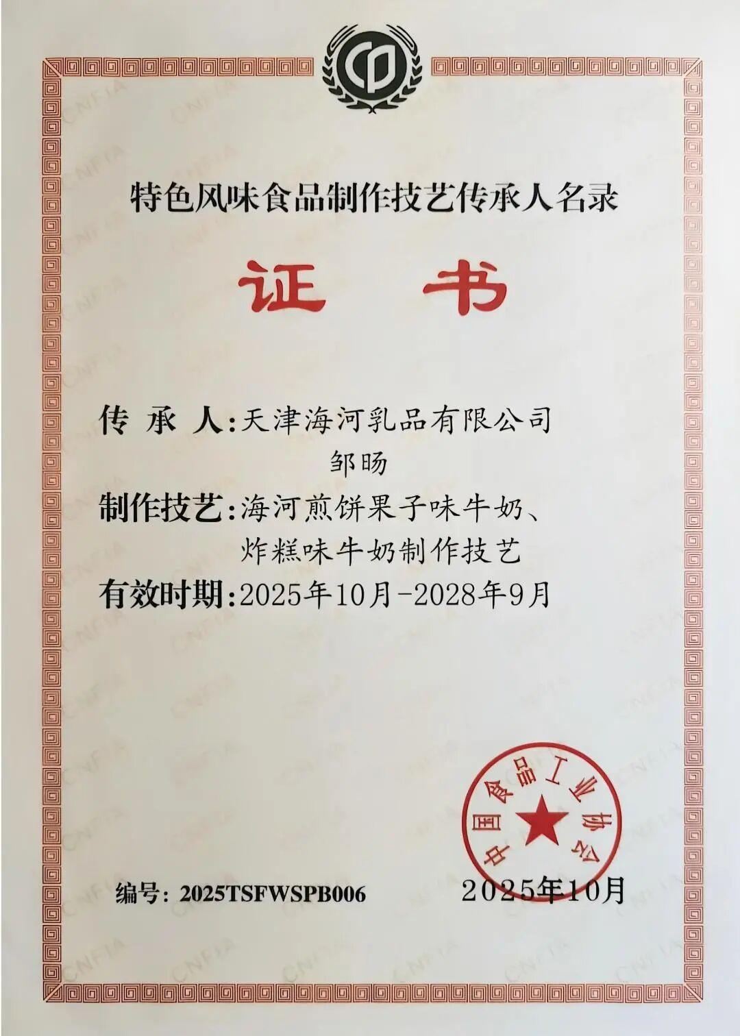 海河乳品公司入選第二批“特色風(fēng)味食品標(biāo)志性產(chǎn)品、制作技藝傳承人名錄”
