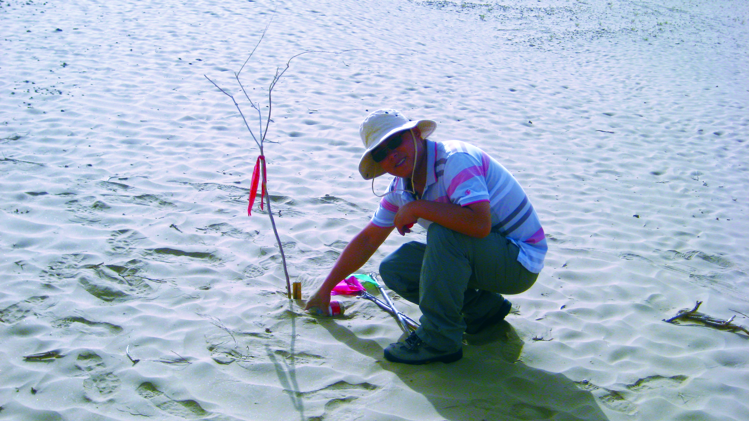 2012年春天,天津市委、市政府決定由原天津農(nóng)墾集團前往新疆策勒縣開展援疆治沙項目。鄧寶不顧家人、朋友的反對,主動請纓,毅然加入援疆工作小組。他安頓好了年過半百的父母和尚在年幼的女兒、告別了妻子,帶著天津農(nóng)墾人的重托,帶著誓讓沙漠變綠洲的夢想與決心奔赴新疆,奔赴地處塔克拉瑪干大沙漠腹地的策勒,開始了與妻兒老小聚少離多、客居他鄉(xiāng)的艱苦歲月。