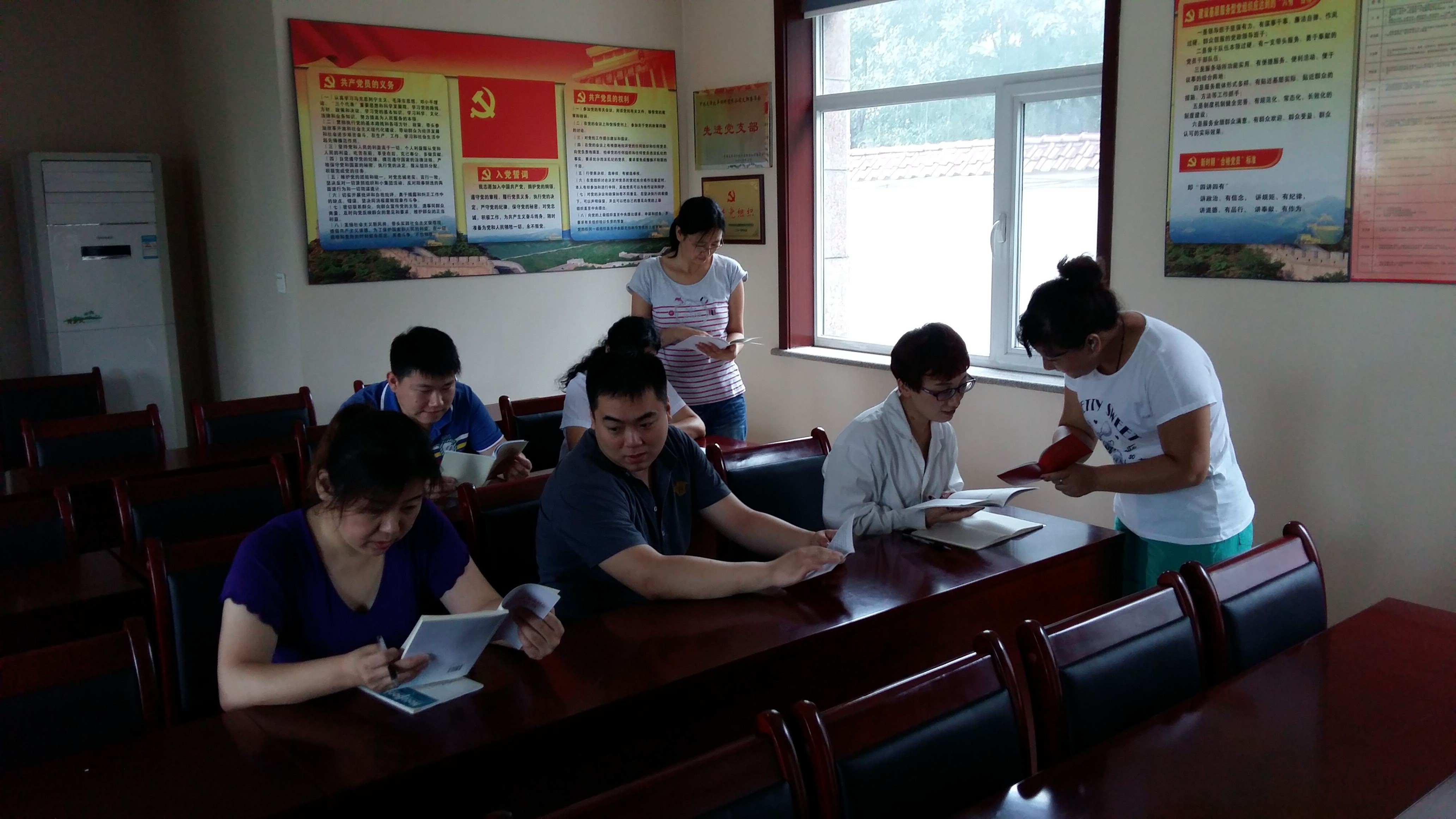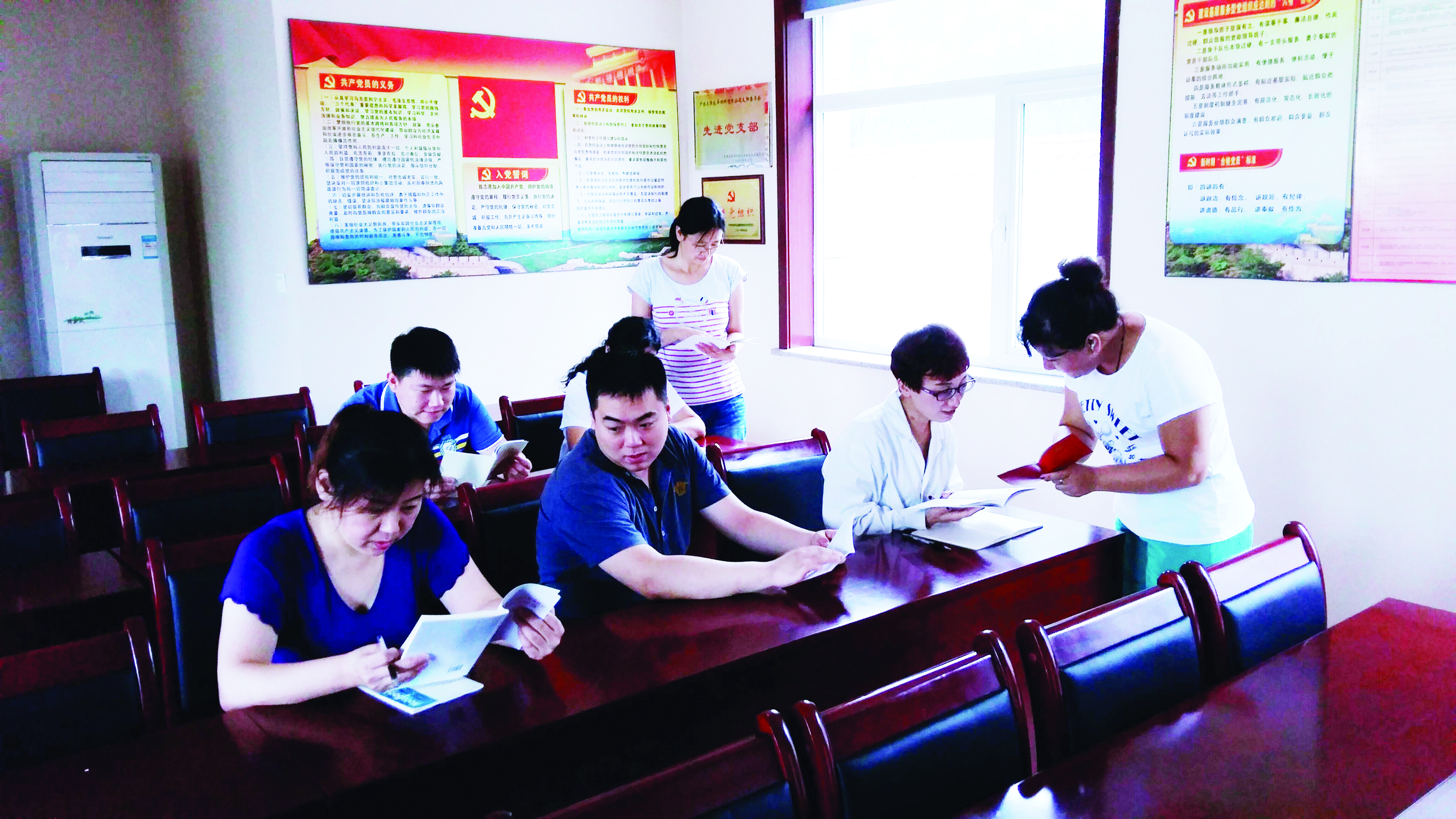 中午12:30剛過(guò),牧豐支部黨員活動(dòng)室迎來(lái)了前來(lái)學(xué)習(xí)的黨員和職工。