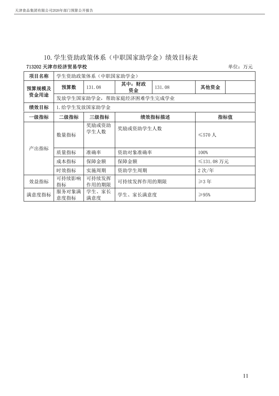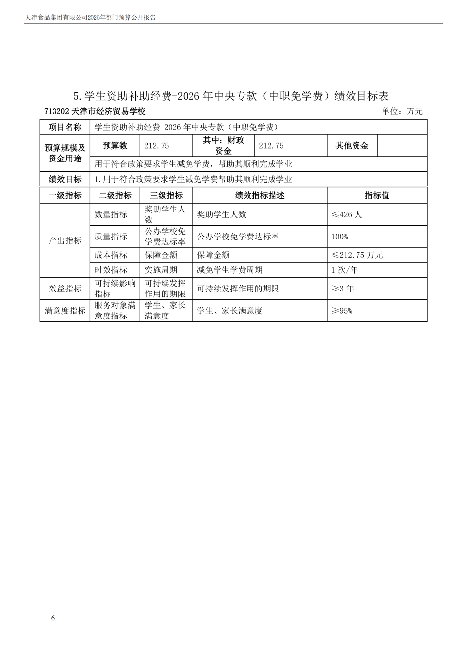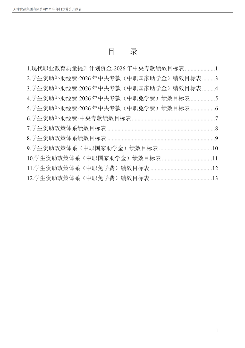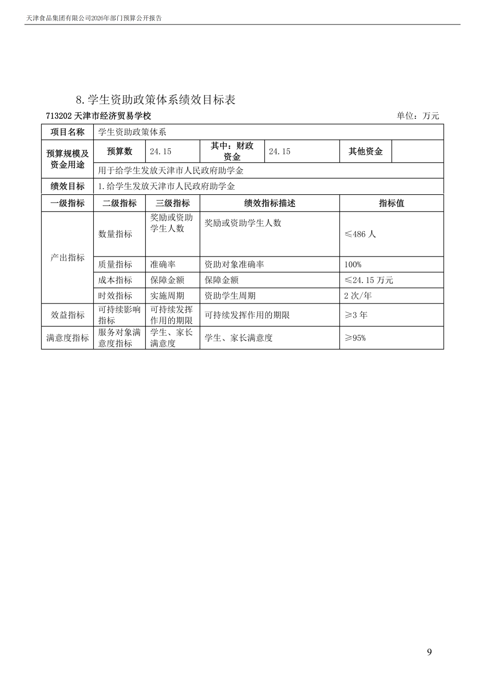 天津食品集團有限公司2026年度部門預算